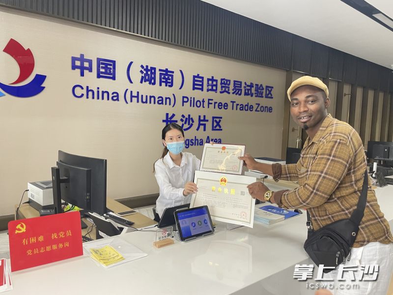 长沙晚报掌上长沙6月24日讯(全媒体记者 刘捷萍 通讯员 梁旭卓)“中国产品很有竞争力,长沙的环境非常包容,在湖南大学的几年学习经历让我爱上了这座城市,所以我想留下来,通过开展进出口业务,把中国的产品带到我自己的国家去。很感谢窗口工作人员非常热情、热心地帮助我。”近日,来自尼日利亚的外籍友人多纳,来到湖南自贸试验区长沙片区综合服务中心办理企业设立登记业务,为工作人员热情周到的服务点赞。