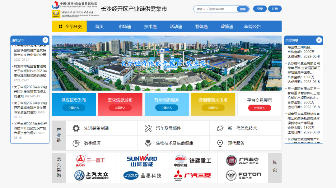 值得一提的是,此次活动中,园区还发布了“长沙经开区产业链供需集市平台”,通过供需集市网站(https://jkqcyl.com/)和微信小程序,供需两端企业均可发布信息。