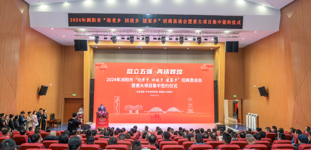 2月3日,2024年浏阳市“迎老乡 回故乡 建家乡”招商恳谈会暨重大项目集中签约仪式举行,200余位湘商、乡友齐聚一堂,共叙桑梓情怀,共商合作大计,共谋美好未来,共同见证重大项目集中签约。长沙市委常委、浏阳市委书记朱东铁出席并致辞。长沙市商务局局长郑平出席。浏阳市委副书记、市长王雄文主持。