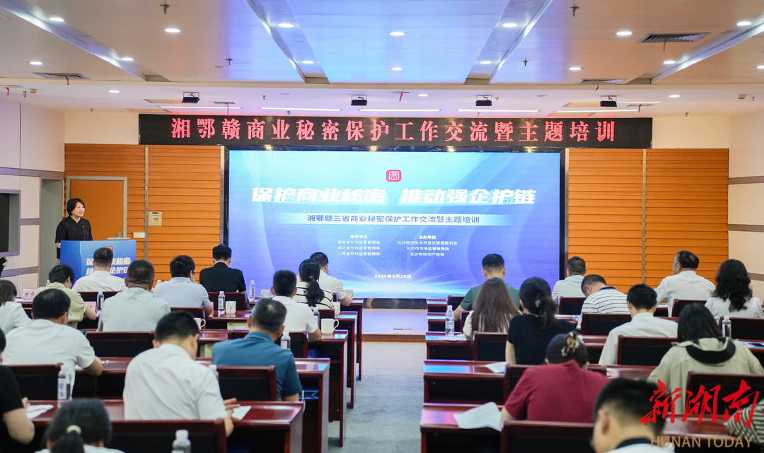 湖南日报·新湖南客户端6月28日讯(记者 王茜)今天上午,以“保护商业秘密 推动强企护链”为主题的湘鄂赣三省商业秘密保护工作交流暨主题培训在长沙经开区举行。长沙经开区党工委委员、管委会副主任张湘鸿出席会议并致辞,湖南省市场监管局价监竞争局副局长李君,湖北、江西、湖南省市监局商业秘密保护工作相关负责人、三省商业秘密保护重点企业代表以及新闻媒体代表100余人参加。同时,活动还进行了全程直播。