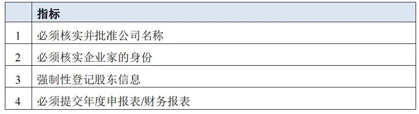 一个能够实现正式创业的安全商业环境对于释放新公司的潜力至关重要。因此,重要的是要评估适用的监管框架是否包括在提交公司信息时为初创企业促进安全安全环境的良好做法。良好做法包括通过安全检查和预防机制登记公司信息(例如,验证公司名称、企业身份验证、企业家身份验证)。因此,子类别1.1.1-公司信息归档有四个指标(表3)。