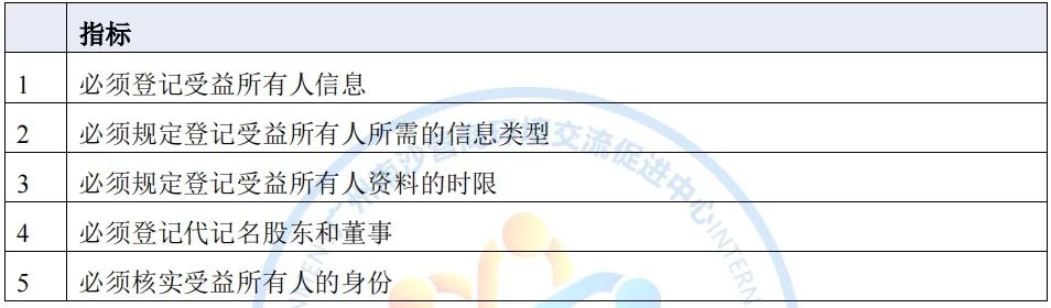 登记充分、准确和及时的受益人信息是确保信息透明度和帮助防止滥用公司从事洗钱或其他非法活动的关键。例如,在企业家开办新企业时,可以通过提交受益所有人固有的必要和有效信息来做到这一点。实际上,正确和完整的受益所有人信息有助于维护商业部门的诚信和声誉,使其对那些意图利用其公司结构达到非法目的的人没有吸引力。因此,子类别1.1.2 -实益拥有权有五个指标(表4)。