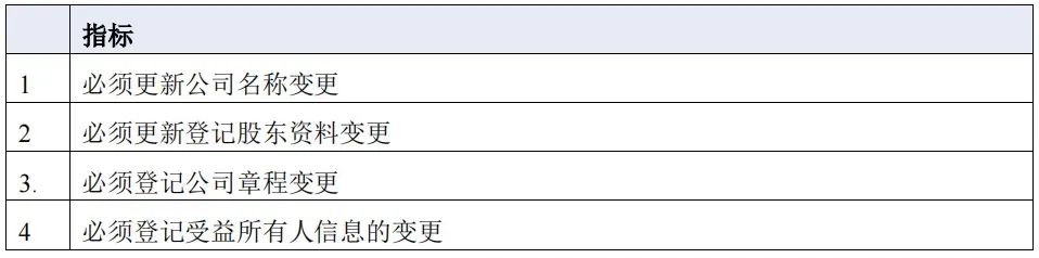 表5. 子类别1.1.3 -公司信息和受益所有权更新