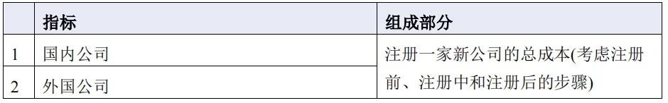 对于维度I,该参数用于不同公司形式的法规不同的情况。对于不同公司形式的监管存在差异的经济体,衡量最常见的有限责任类型公司的法规。对于维度II,该参数用于确定可用的相关服务。对于维度III,该参数与时间和成本的度量相关,因为它们在不同的公司法律形式中可能存在显著差异。