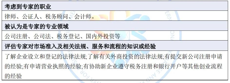 所有三个维度的数据都是通过与私营和公共部门专家协商收集的。私营部门专家包括在创业过程中工作的从业人员、律师和公证员。这些专家对公司注册的法律法规以及新企业家在开始运营之前需要完成的不同监管程序有深入的了解。