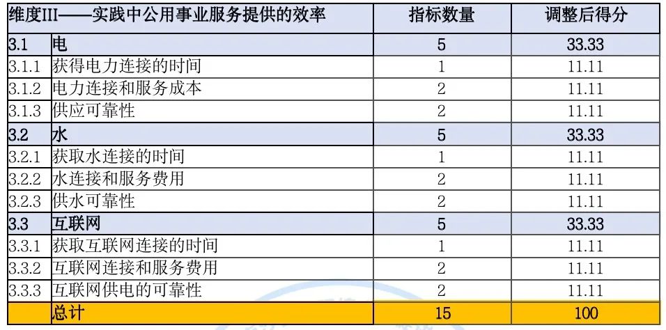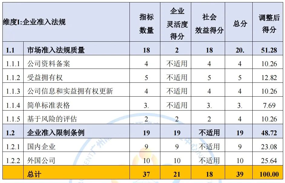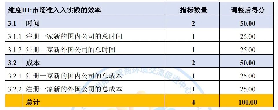 表19显示了维度III(即市场准入效率)的结构。该维度的每个类别和子类别将按照表中所示的顺序进行更详细的讨论。