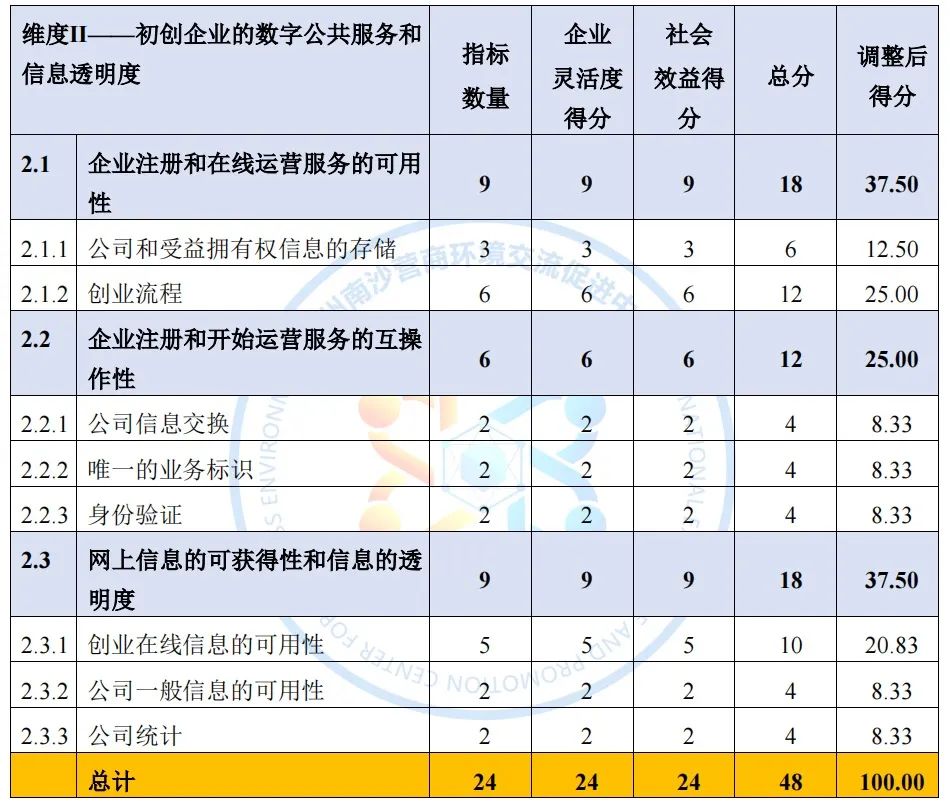 表10. 维度 II-创业企业的数字公共服务和信息透明度