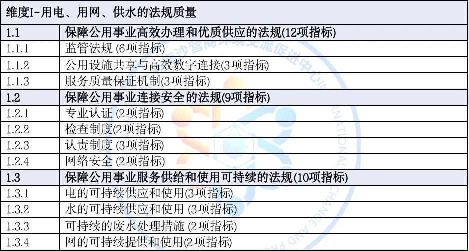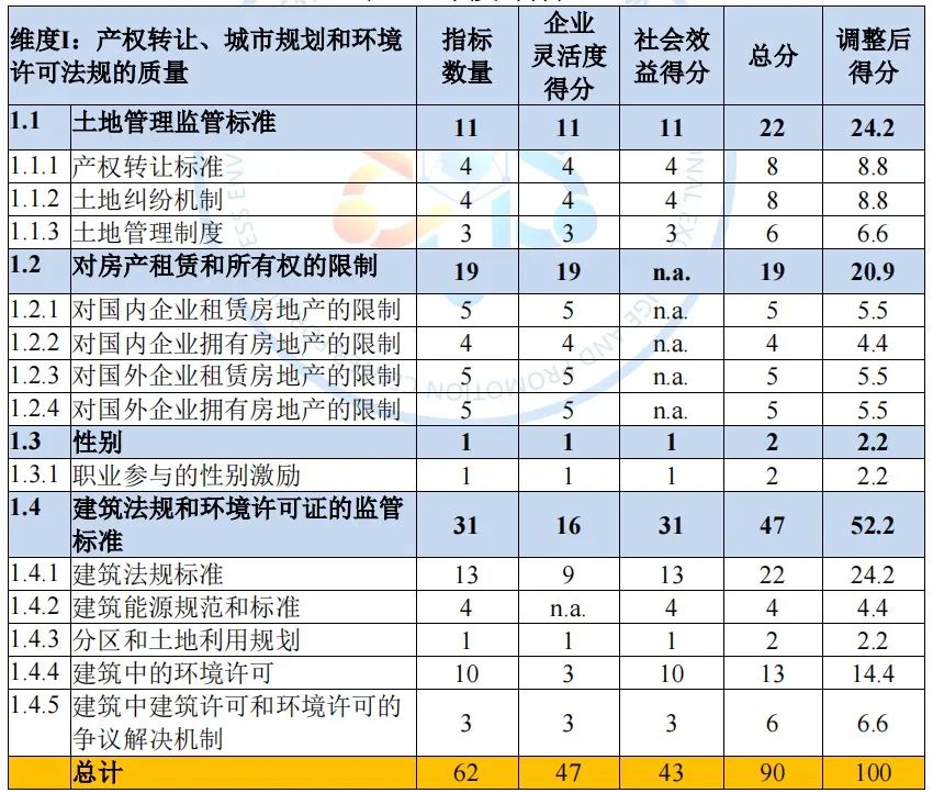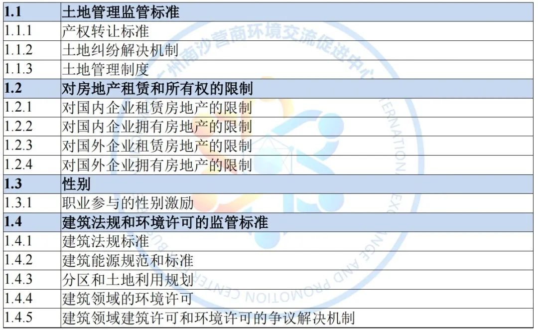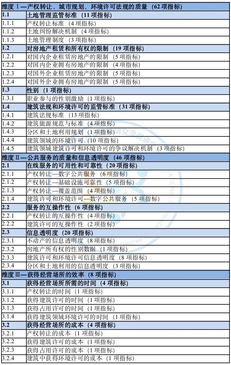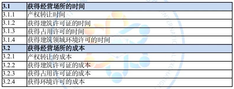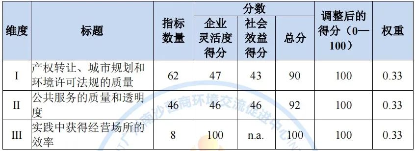 维度I和维度II共用相同的一般参数。劳工法规和公共服务具有相同的一般参数。许多经济体都有地方管辖区,这就需要指定一个具体的商业地点,以便专家确定要评估的相关监管框架。
