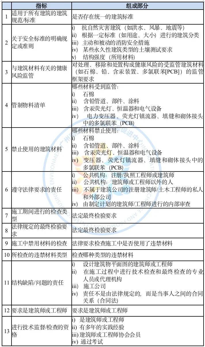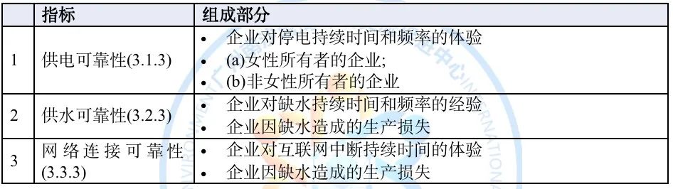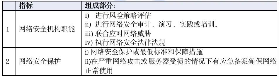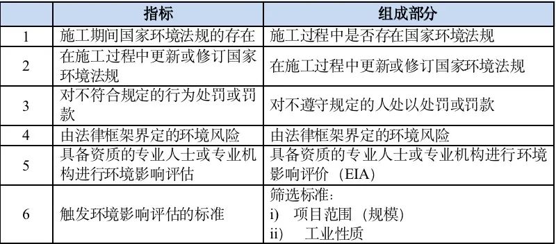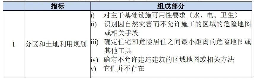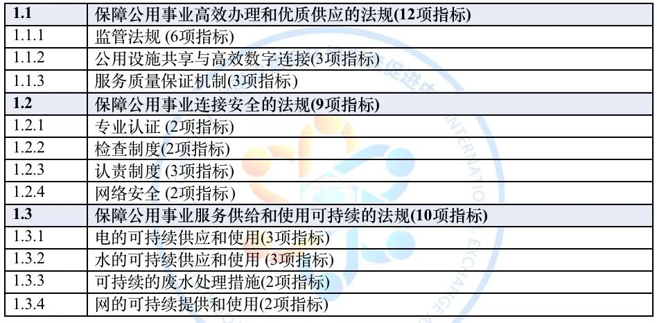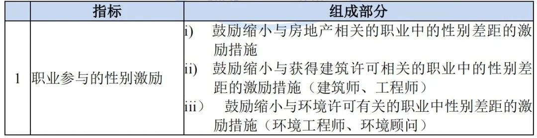 类别 1.1 有五个子类别,由几个指标组成,每个指标又可能包括几个组成部分。