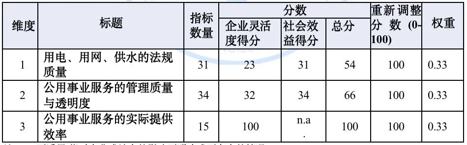 第一维度涵盖29项指标,总分31分(企业灵活性11分,社会效益20分)(表31)。这一维度下各类别的得分如下: