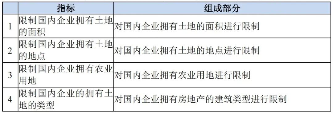 对国际投资者实行更严格的监管框架与外国直接投资流入减少有关。与国内公司的情况类似,对外国私营公司的限制可以是一般限制,也可以是特殊限制的。除了适用于国内民营企业的一般限制外,外资企业可能面临特殊限制。这些限制可能包括对所有权、股息分配或员工国籍的限制。外国公司可能还需要遵守额外的监管要求,例如获得国家投资主管部门的批准或申请一般投资者许可证。如果外国的参与或所有权受到限制或完全限制,也可以有特定部门的限制。因此,子类别1.2.2 -外国公司有10个指标(表9)。