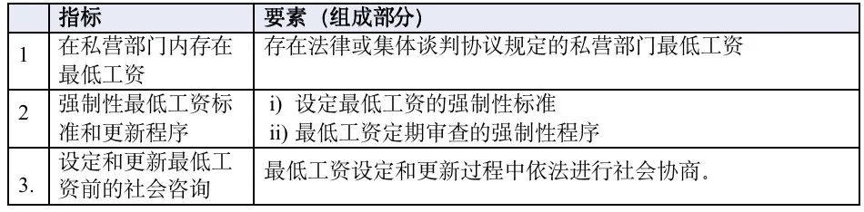 最低工资是一种保护形式,旨在确保所有就业人员获得最低生活工资。精心设计和有效的最低工资可以有助于减少经济体内部和经济体之间的不平等。相反,当最低工资设定过高时,可能会产生相反的效果,比如鼓励非正规就业,并使工人的福祉面临风险。最低工资在促进充分就业和生产就业以及人人享有体面工作方面发挥着作用。因此,子类别1.2.2 最低工资率有一个与之相关的指标(表9)。