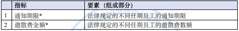 为了减轻立即终止雇佣关系的不利后果,建议员工在合理的期限内收到通知。这种通知的目的是让员工为失业做好准备,给他/她/他们必要的时间来适应和/或寻找新的工作。同样,遣散费的存在缓和了员工在裁员情况下的收入损失。当通知期限过长,法律规定的遣散费数额过高时,它们就不再起到保护正式员工的目的,而是保护少数被选中的员工。面对昂贵的解雇程序,公司可能会选择不做出新的招聘决定,这可能反过来影响他们的生产率和增长,也会影响年轻人的就业和经济体人力资本。因此,子类别1.2.5有两项指标(表12)。