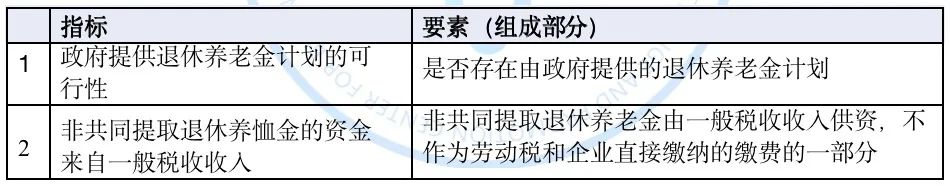 公共养老金制度是老年人收入保障的基础。老年收入保障对帮助减少经济体内部和经济体之间的不平等以及支持性别平等作出重大贡献。如果由一般收入提供资金,非共同提取退休养老金也可以减轻企业的一些成本负担,使他们能够将这些资本用于员工工资和公司的发展。因此,子类别2.1.3有两项指标(表16)。