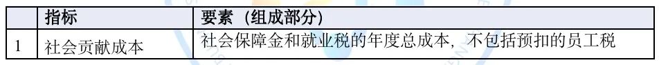 社会缴费不应给企业带来过大的财务负担。较高的社会缴费成本可能会阻碍企业正规招聘或“迫使”企业寻找非正正规劳动力。因此,子类别3.1 -社会贡献成本有一项与社会贡献成本相关的指标(表21)。