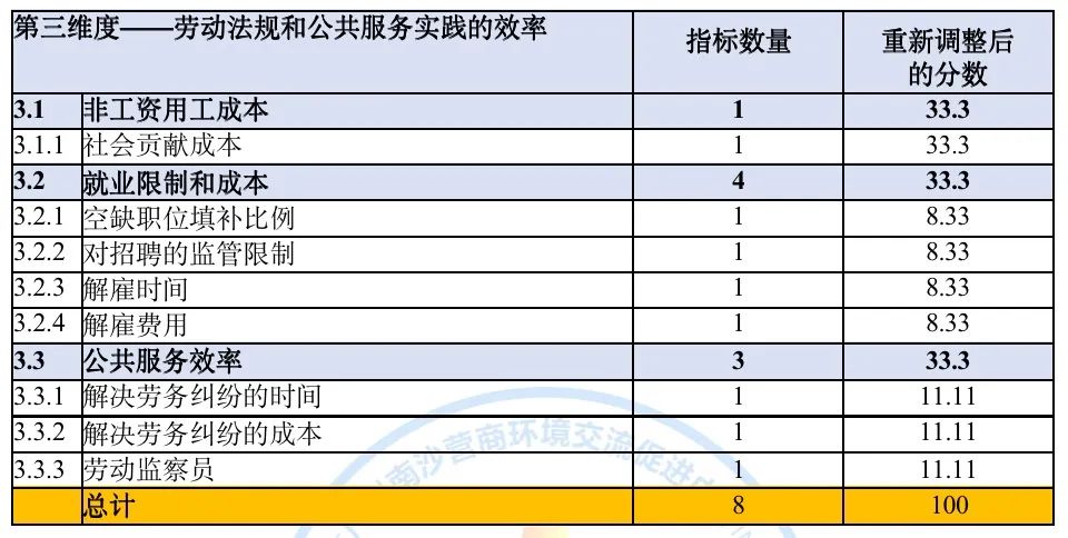 3.维度 III. 效率:劳动法规和公共服务在实践中的效率
