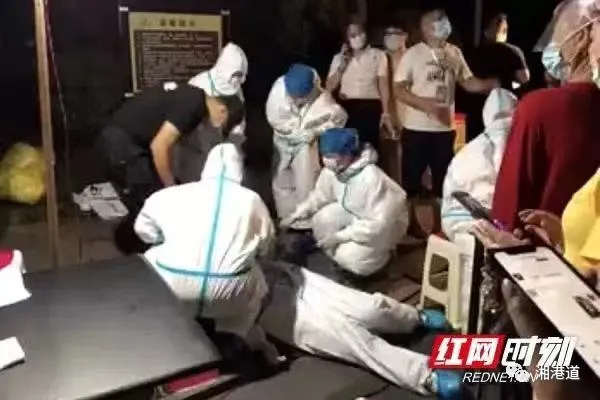 在核酸检测采样过程中,宁乡有6名医护人员中暑晕倒在现场。