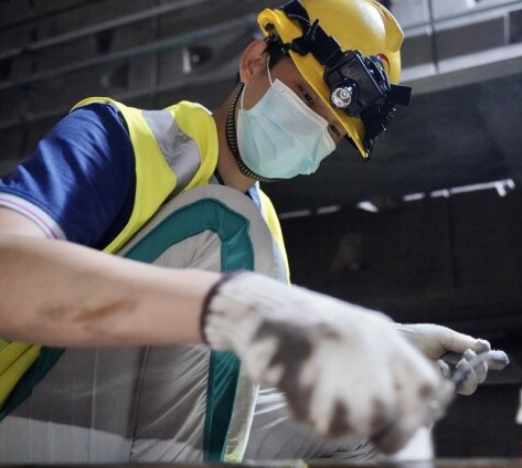 在地下20米深的安静又幽长隧道里,陈武和同事们反复蹲下、站起,手拿超声波探测仪的探头,在轨道接触面上来回滑动。“秋冬季节的隧道里是最舒服的,春天隧道里非常潮湿,夏天又太闷热。”刚检查完4处焊接头,陈武的头上便凝了一层汗珠。