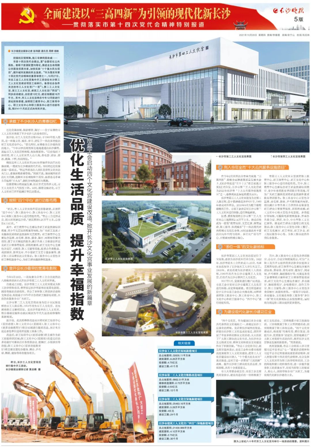 在今年2月召开的全市奋力实施“三高四新”战略全面推进高质量发展大会上,《长沙市推进“五个十大”项目实施方案》正式印发,长沙市第三工人文化宫成为2021年长沙市“十大公共服务设施项目”之一,是事关民生福祉的重大项目。