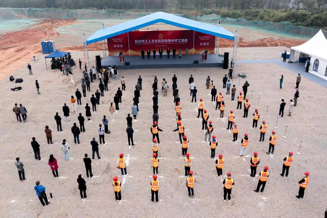 (10月27日上午,长沙市四个工人文化宫项目建设集中开工活动在第三工人文化宫项目建设工地举行)