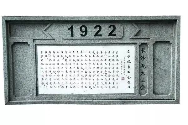 (建筑工人文化宫靠近五一大道的墙上的长沙泥木工会故址纪念碑)