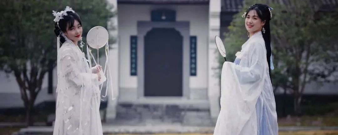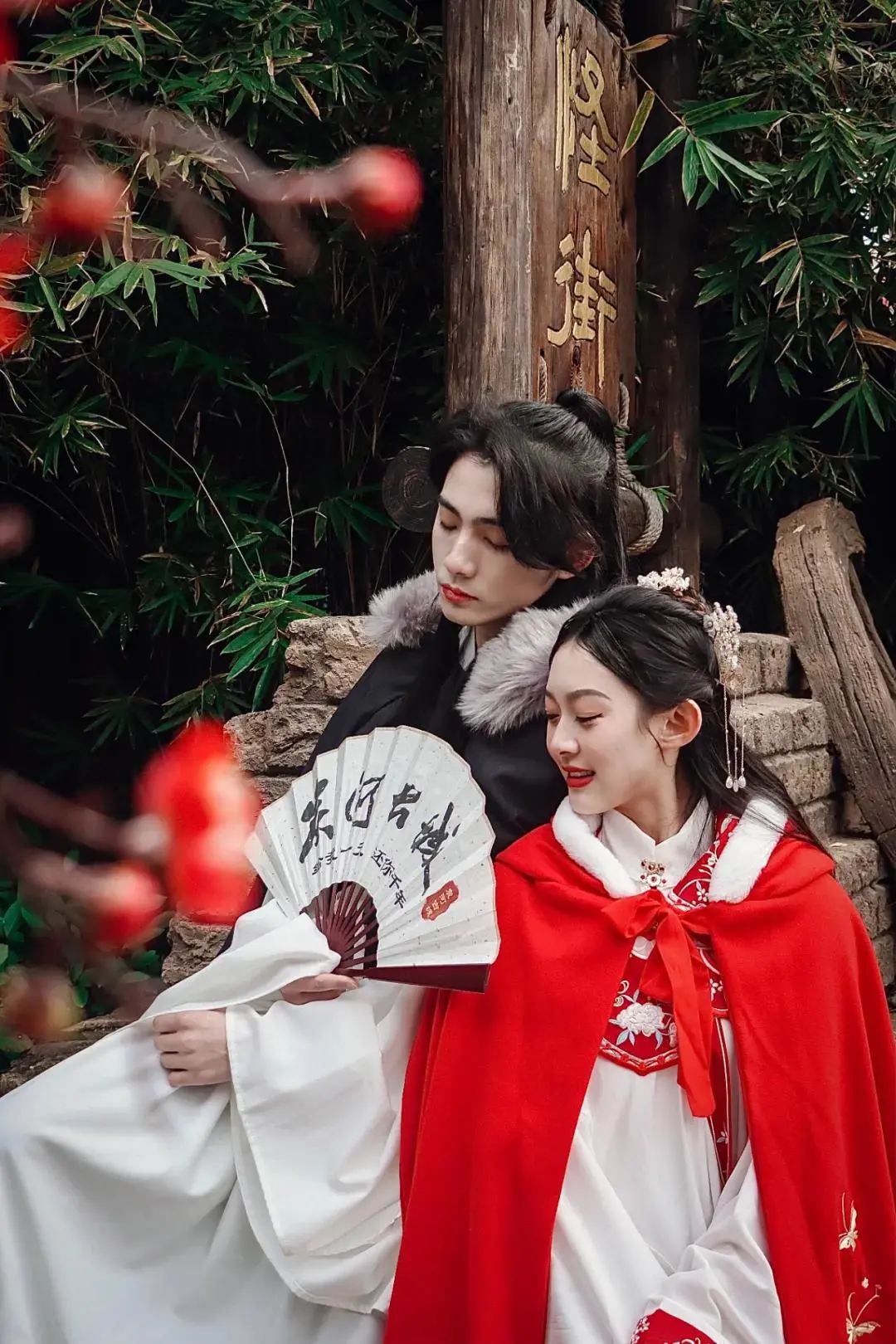 新年着新衣,穿梭在纵横交错的梅花与园舍间好不惬意。