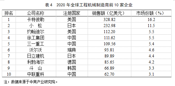 长沙作为“中国工程机械之都”,智能制造装备产业集群获批国家首批战略性新兴产业集群,已成为世界三大工程机械产业集聚地之一。三一重工、中联重科、铁建重工、山河智能位列全球50强,但相比美国巨头卡特彼勒公司(CAT),销售额和市场份额仍有不小差距(表4)。