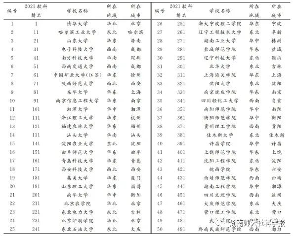 (一)基于“软科2021中国大学排行榜”的样本高校选取