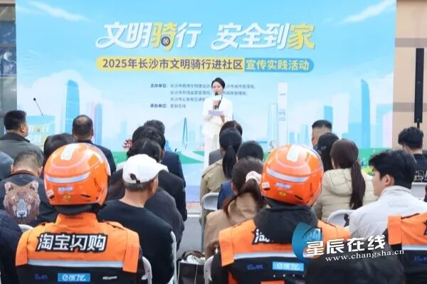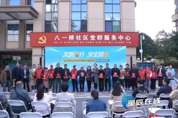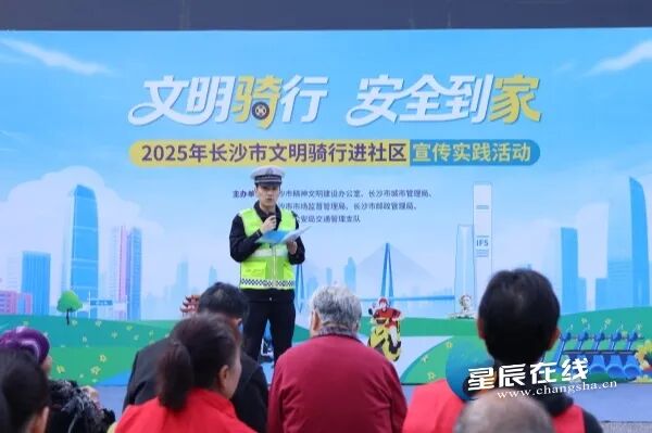 (“文明骑行 安全到家”2025年长沙市文明骑行进社区宣传实践观摩督导活动现场)