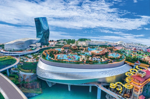 如今的湘江欢乐城日日游人如织,在这里,市民游客既可以在悬浮于百米深坑之上的欢乐雪域里滑雪,又能在悬崖上的欢乐水寨冲浪戏水,“冰火两重天”的奇特游玩体验在湖南湘江新区成为现实。
