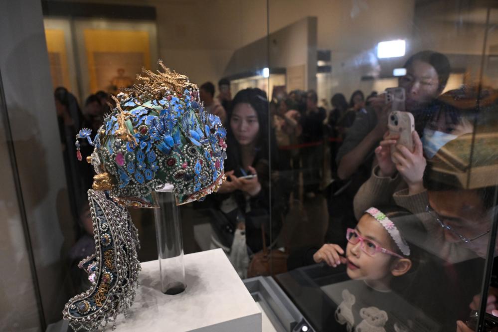 3月25日,观众在北京中国国家博物馆观看明孝端皇后九龙九凤冠。(新华社记者 金良快 摄)